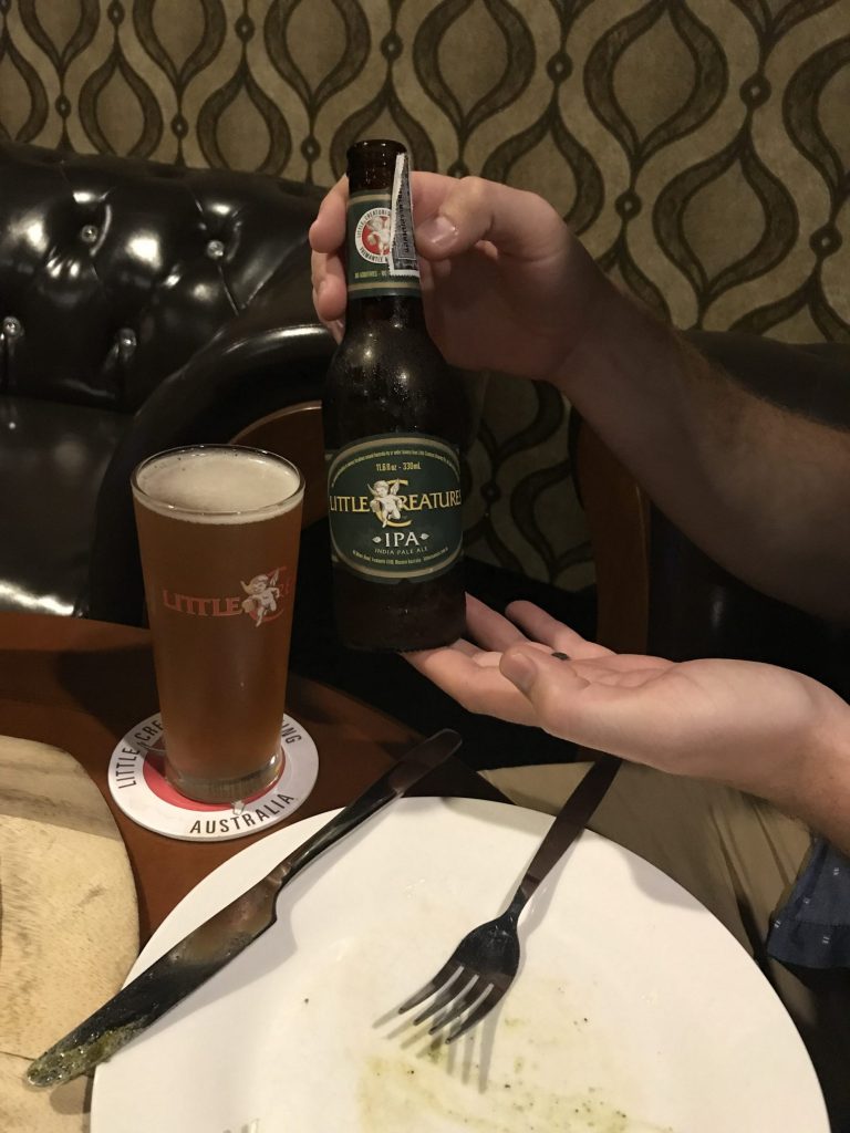 The crowning jewel of this place was the beer selection. Anders was so excited when Eric told him he was a beer guy. He explained that he imports all his beers from around the world. He gave Eric some suggestions and he went with an interesting beer from Belgium. I went with wine because wine was hard to come by in Southeast Asia.